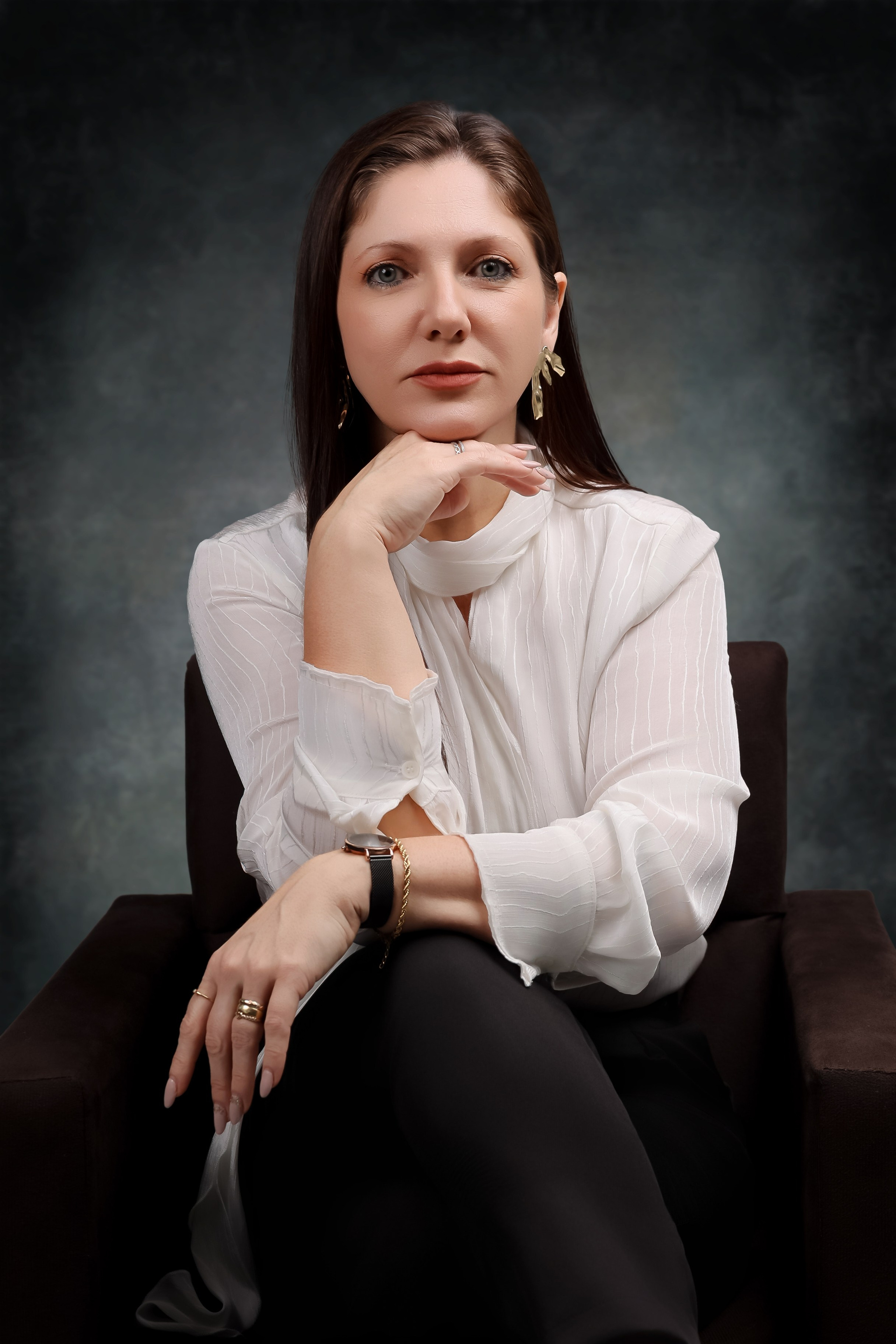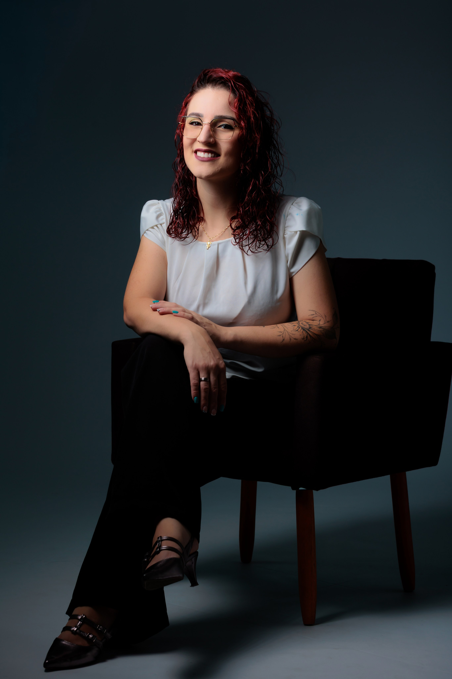 Retrato corporativo realizado em estúdio em IndaialAtendimento para Timbó e Blumenau